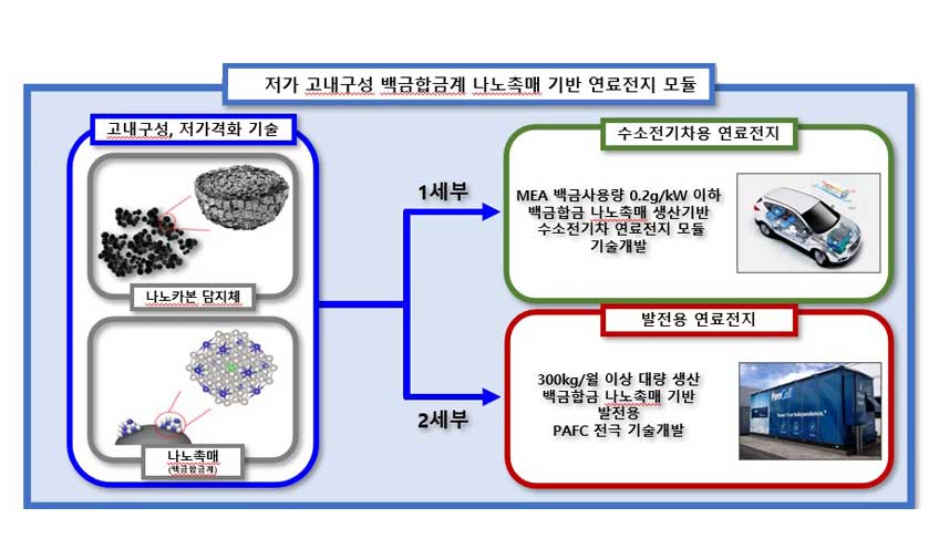 Low-cost, high-durability nano platinum alloy catalyst based fuel cell module